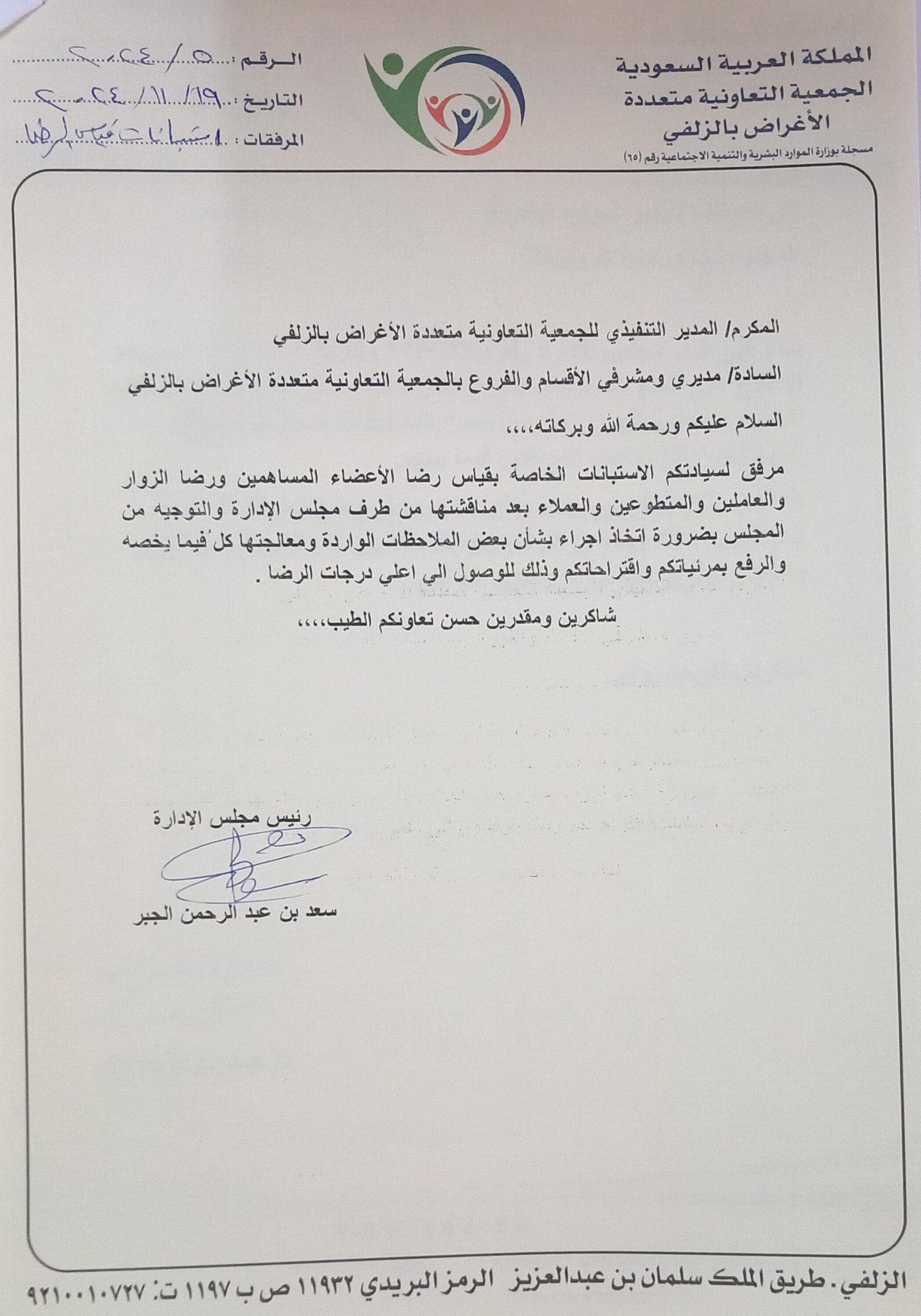 نحرص في الجمعية التعاونية متعددة الأغراض بالزلفي على الاستماع لآرائكم وملاحظاتكم، ونعتمد على التغذية الراجعة كأداة رئيسية لتحسين خدماتنا وتطوير أدائنا.